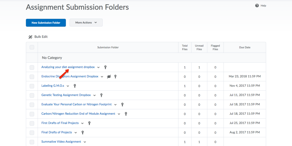 - Select the assignment dropbox folder that you want to assess, and click the title.