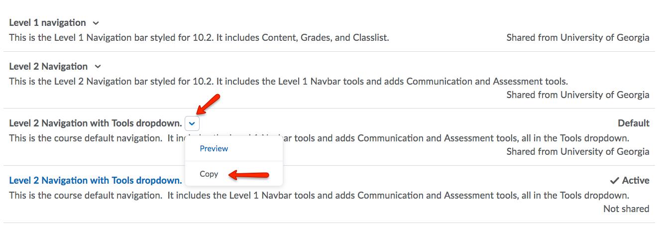 - Click the drop-down arrow next to the name of the navigation bar you want to copy, and click Copy.