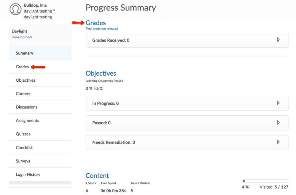 The Class Progress tool tracks your learners’ overall progress as a course and individually.