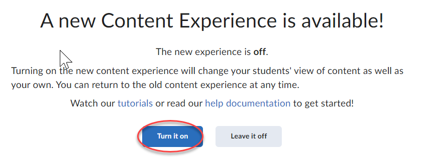 Please be aware that students in your course will see whichever Content Experience you select, so we recommend not switching between each experience often throughout the academic semester to avoid student confusion.