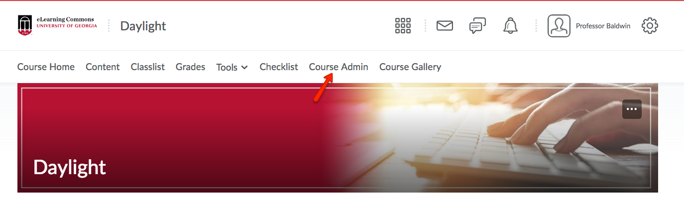- To begin the process of uploading a file or multiple files to the Manage Files tools, first, select Course Admin from the course navbar.