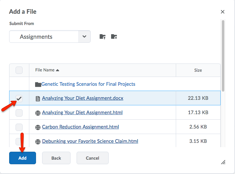 - Now the files can be added to a module or sub-module. Click on the module or sub-module to which you want to add the files.