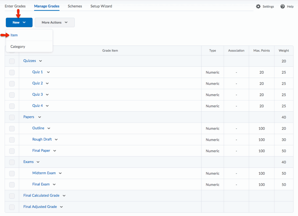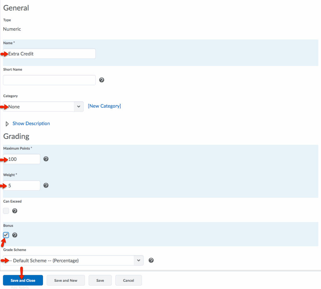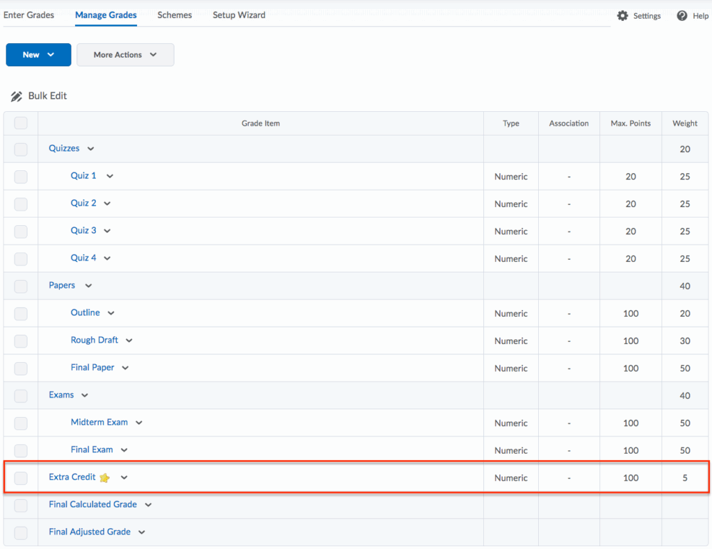 In this tutorial, an extra credit item that is worth 5% of the final grade will be created.