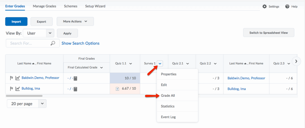 - Click the dropdown menu of the grade item from which you would like to exempt a student. Select Grade All.