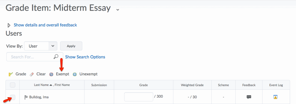 - Select the checkbox next to the student that you would like to exempt. Click Exempt.