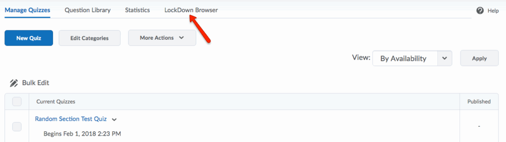 - Open the Quiz Tool and select the LockDown Browser tab.