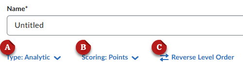 - Description – (Optional) Type a description of the rubric for your personal reference. This is not visible to students.