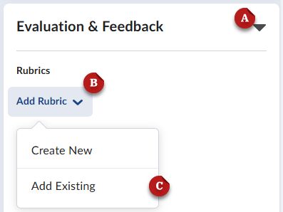 - Click Add Existing [C] (You can also Create New if you want a new rubric)