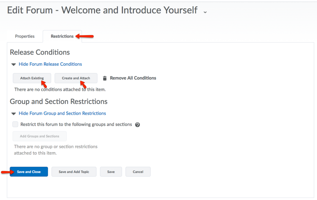 - Note: Once a user meets a release condition, the condition is cleared for that user and cannot be reset. For example, if you attach a release condition to a discussion topic requiring users to achieve more that 60% on a quiz before they can access that topic, and one of your participants receives 72% on the quiz but you adjust their grade to 55% they will be able to access the topic because they did meet the requirement at some point.
