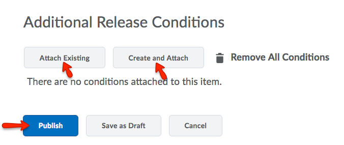 Release conditions allow you to create a custom learning path through the materials in your course. When you attach a release condition to an item, users cannot see that item until they meet the associated condition. For example, you could require users to visit the first three content topics in a unit before gaining access to an associated quiz.