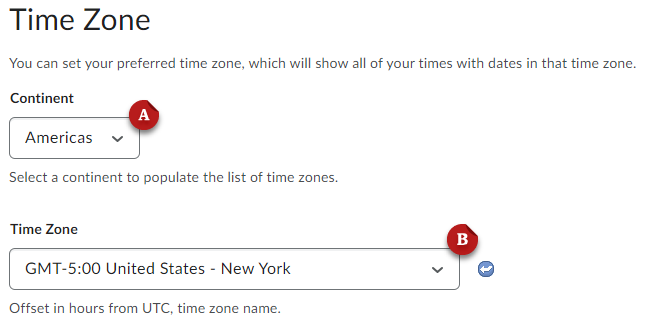 The default time zone for a UGA course is Eastern Standard Time (EST). If you are working remotely and in a different time zone, you can update Brightspace to reflect that. This will help eLC synchronize due dates and other time-related settings within the course between EST and your current time zone.