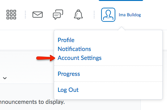 - Click on your name in the top right hand corner, then choose Account Settings.