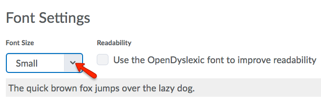 - Under Font Settings, select a font size: Small, Medium, Large, or Huge.