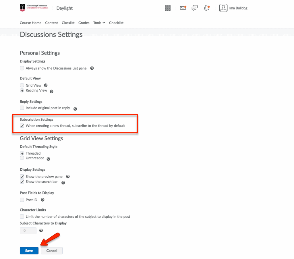 - Changing the settings in Discussions primarily changes how the Discussion Lists are viewed. Instructors may ask that original posts are included or not included in Replies. This can be changed by checking the Reply Settings, then Save.